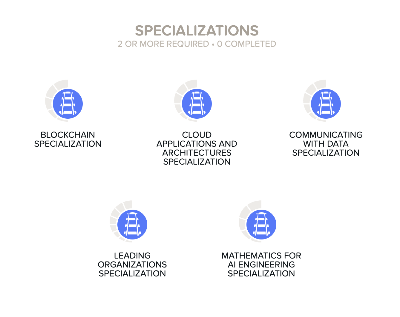 In order to graduate, you must complete two specializations. If you take more than two specializations, only your highest exam score counts towards your final grade.
